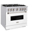 ZLINE 36"Classic Gas Range, Convection Gas Oven, Stainless Steel, White Matte Door CGR-WM-36