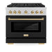 ZLINE 36"Paramount Dual Fuel Range DuraSnow® Black Matte, Gold SDRSZ-BLM-36-G