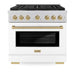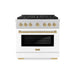 ZLINE 36"Paramount Dual Fuel Range DuraSnow® White Matte, Champagne Bronze SDRSZ-WM-36-CB