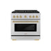 ZLINE 36"Paramount Dual Fuel Range Stainless Steel Champagne Bronze SDRZ-36-CB