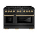 Luxury isn't meant to be desired - it's meant to be attainable. The ZLINE Autograph Edition 48 in. 6.7 cu. ft. 8 Burner Double Oven Gas Range in Black Stainless Steel and Polished Gold Accents (SGRBZ-48-G) features a versatile gas cooktop with 8 Italian-made burners, a large high-performing gas convection oven, and a small baking oven with elegant polished gold knobs and handles allowing you to master every meal. With a modern, timeless style and refined functionality, ZLINE Professional Gas Ranges are masterfully crafted to deliver an elevated culinary experience.