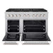 • Convection Gas Oven - The larger oven features bake, broil, and convection modes with a BTU output of 22,000, while the smaller oven has a baking BTU output of 14,000