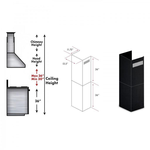 View full detailsZLINE 1-36"Chimney Extension for 9 ft.-10 ft. Ceilings, 1PCEXT-BSKEN Receive products within 3-5 business days ZLINE's chimney extensions fo...