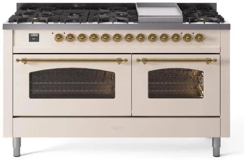 View full detailsILVE Nostalgie II 60" Dual Fuel Natural Gas Range, Antique White, Brass Trim UP60FNMPAWG Please call (800)604-1380 Ext#2 before placing your order...