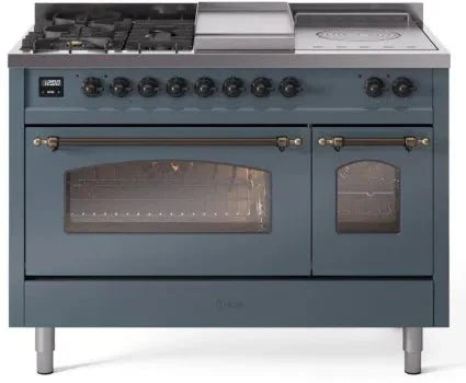 View full detailsILVE Nostalgie II 48" Dual Fuel Natural Gas Range Blue Grey Bronze Trim UP48FSNMPBGB Please call (800)604-1380 Ext#2 before placing your order to ...