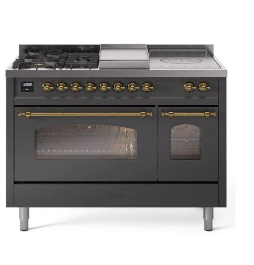 View full detailsILVE Nostalgie II 48" Dual Fuel Natural Gas Range Matte Graphite Brass Trim UP48FSNMPMGG Please call (800)604-1380 Ext#2 before placing your orde...