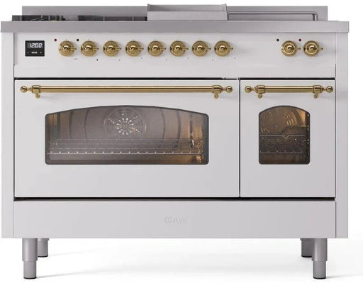 View full detailsILVE Nostalgie II 48" Dual Fuel Natural Gas Range White Brass Trim UP48FSNMPWHG Please call (800)604-1380 Ext#2 before placing your order to confi...