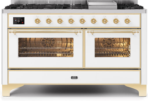 View full detailsILVE Majestic II 60 Inch Dual Fuel Natural Gas Freestanding Range in White with Brass Trim UM15FDNS3WHG Please call (800)604-1380 Ext#2 before pla...