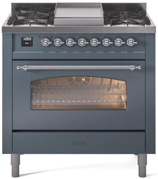 View full detailsILVE Nostalgie II 36 " Dual Fuel Natural Gas Freestanding Range in Blue Grey with Chrome Trim, UP36FNMPBGC Please call (800)604-1380 Ext#2 before ...