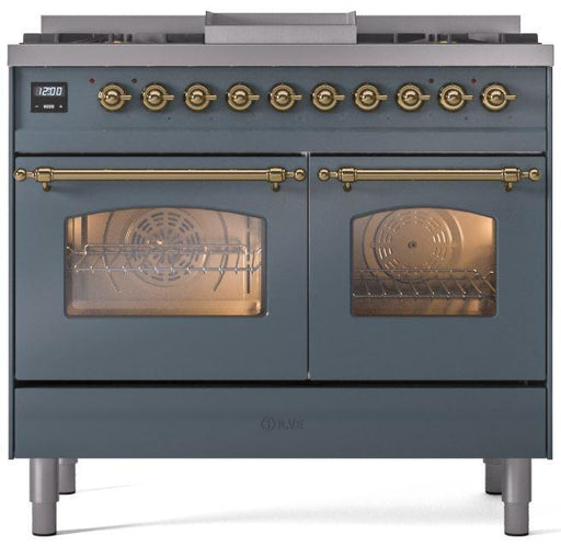 View full detailsILVE Nostalgie II 40 " Dual Fuel Natural Gas Range, Blue Grey, Brass Trim, UPD40FNMPBGG Please call (800)604-1380 Ext#2 before placing your order ...
