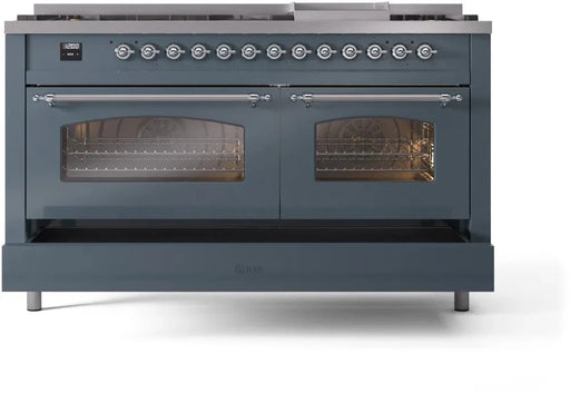View full detailsILVE Nostalgie II 60" Dual Fuel Natural Gas Range, Blue Grey, Chrome Trim UP60FNMPBGC Please call (800)604-1380 Ext#2 before placing your order to...