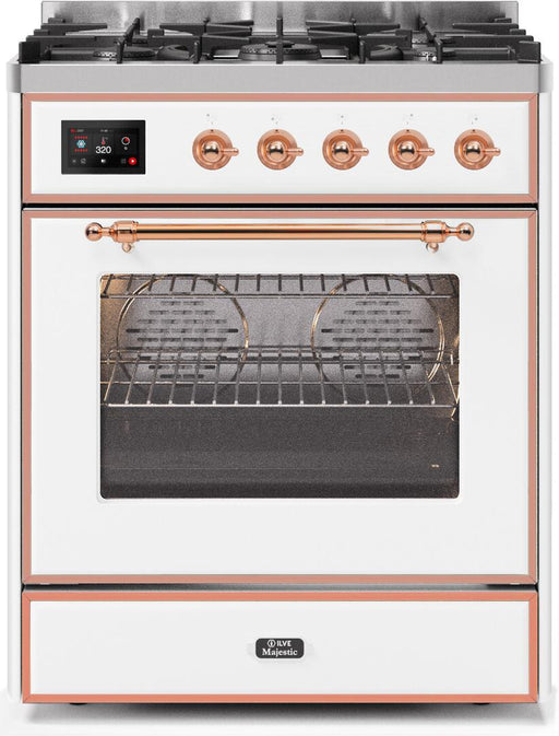 View full detailsILVE Majestic II 30 Inch Dual Fuel Natural Gas Freestanding Range in White with Copper Trim UM30DNE3WHP Please call (800)604-1380 Ext#2 before pla...