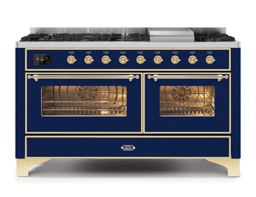 View full detailsILVE Majestic II 60 Inch Dual Fuel Natural Gas Freestanding Range in Blue with Brass Trim UM15FDNS3MBG Please call (800)604-1380 Ext#2 before plac...