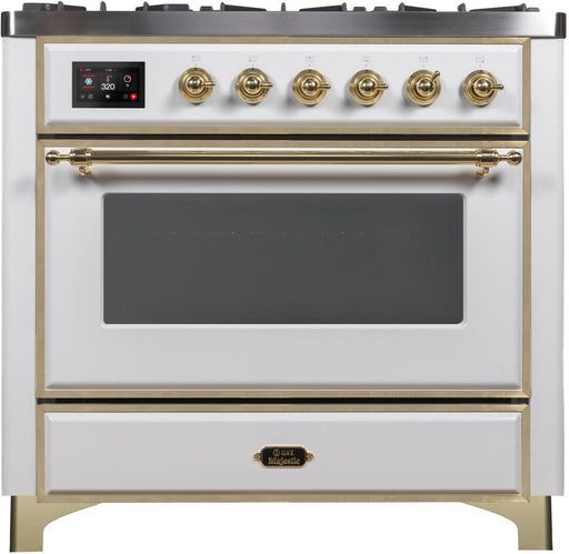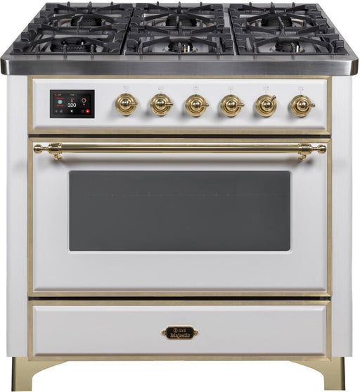 View full detailsILVE Majestic II 36 Inch Dual Fuel Natural Gas Freestanding Range in White with Brass Trim UM096DNS3WHG Please call (800)604-1380 Ext#2 before pla...