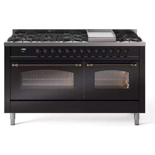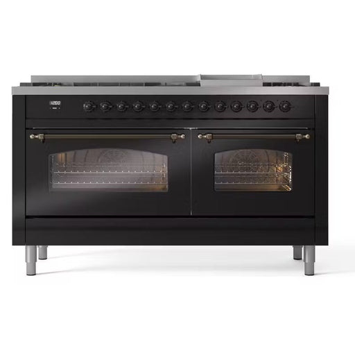 View full detailsILVE Nostalgie II 60" Dual Fuel Natural Gas Range, Glossy Black, Bronze Trim UP60FNMPBKB Please call (800)604-1380 Ext#2 before placing your order...