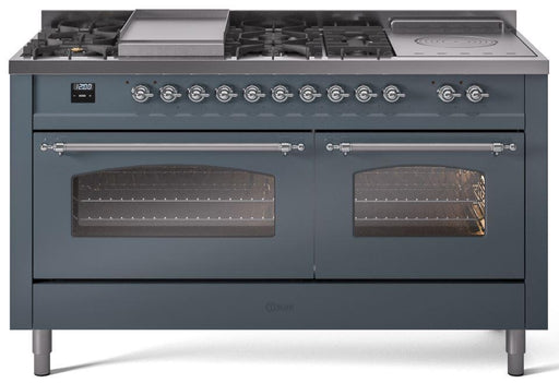 View full detailsILVE Nostalgie II 60" Dual Fuel Natural Gas Range, Blue Grey, Chrome Trim UP60FSNMPBGC Please call (800)604-1380 Ext#2 before placing your order t...