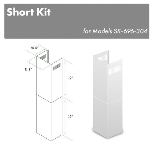 View full detailsZLINE Short Chimney Pieces for 7'-8' Ceilings, SK-696-304 ZLINE's Wall Chimney Short Kit.Two 12-inch chimney pieces will replace the standa...