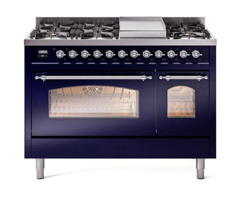 View full detailsILVE Nostalgie II 48" Dual Fuel Natural Gas Range, Blue, Chrome Trim UP48FNMPMBC Please call (800)604-1380 Ext#2 before placing your order to conf...