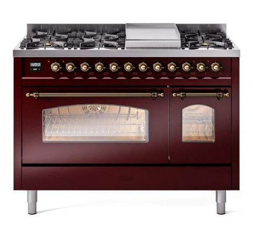 View full detailsILVE Nostalgie II 48" Dual Fuel Natural Gas Range, Burgundy, Copper Trim ILVE UP48FNMPBUP Please call (800)604-1380 Ext#2 before placing your orde...