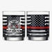 - Each firefighter whiskey glass is adorned with a striking firefighter American flag design that instantly captures the essence of their unwavering commitment. The flag, intertwined with the firefighter's emblematic tools, symbolizes the sacrifices made by these selfless individuals. As you sip your favorite beverage from these glasses, you'll be reminded of the bravery and dedication that firefighters demonstrate daily.