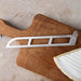 - A soft cheese knife will easily cut all soft cheeses. The void in the blade helps prevent sticking. Blade measures 8.5" long x 1.25" wide.