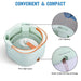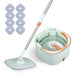 Spin Mop and Bucket Set features 2 buckets for separating clean and dirty water, and self-washing and wringing at the same time. 180-degree spin mop with telescopic handle can easily access narrow space, making every corner clean.