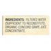 Filtered water (sufficient to reconstitute); organic concord grape juice concentrate.