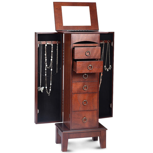 View full detailsThis Medium Brown Wood Jewelry Armoire Storage Chest Cabinet with Mirror is perfect for any woman. It features six different drawers that offer spa...