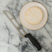 Formaticum professional cheese knives are the highest quality cheese tools. These knives are handmade in Italy and feature stainless steel blades and black polyethylene handles. The offset handle design makes it easy to use, resulting in clean, professional cuts every time. This blade is designed as a soft cheese knife and will easily cut all soft cheeses. The void on the blade helps prevent sticking. Formaticum professional cheese knives should always be hand-washed.