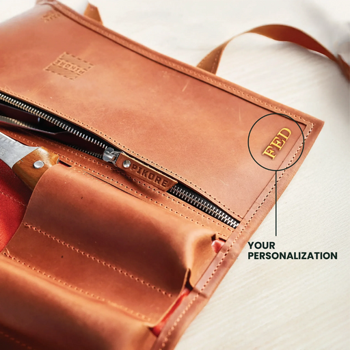 European Leather Works organized check knife roll is made of heavy-duty leather material which you will find in different brown leather color varia...