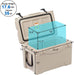 - Rotomolded Insulated Cooler- Constructed with LLDPE plastic and Insulated with polyurethane foam for superior insulation and strength. It is also equipped with heavy-duty silica gel lid T-latches for secure lid closure, a thick insert thermal gasket for maximum chill, and wide reinforced hinges to ensure higher performance.