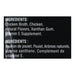 Chicken Broth, Chicken, Chicken Liver, Wheat Gluten, Vegetable Oil, Natural Flavor, Tapioca Starch, Guar Gum, Vitamins (E, D3, B1, B2, B6, B12, Niacin), Taurine, Green Tea Extract