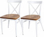 Set of 2 Dining Room Chairs Metal Frame Wood Seat Cross Back Side Seat Kitchen