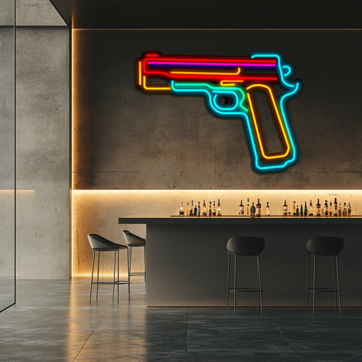 Pistol Weapon Metal Neon Wall Art- LN0127