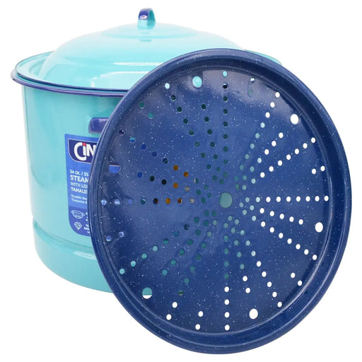 View full detailsHigh-quality Cinsa Steamer Pot: This 34-quart turquoise steamer pot is a must-have for any kitchen, offering both style and functionality. Versa...