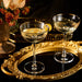 - The Vintage Inspired Art Deco Crystal Coupes with a Gold Rim are perfect for the spring and upcoming summer season. The glasses' unique and elegant design, combined with the gold rim and crystal detailing, makes them perfect for outdoor gatherings, parties, and celebrations. They are perfect for any special occasion, including weddings, housewarming parties, and other celebratory events.