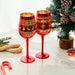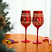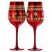 - Ring in the Holiday Season with this unique Christmas Wine Glass Set of 2 by Gute! Featuring two red and gold wine glasses with a beautiful winter wonderland patterned design, it's the perfect drinkware to celebrate the happiest time of the year! Perfect for anyone who loves the holiday season or winter!
