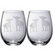 - This beautiful wine glass set is perfect for any Chihuahua lover! This set of two stemless wine glasses features the iconic profile of a Chihuahua and delightfully etched designs on the glass. Show your love for the dog in your life with our carefully crafted Chihuahua Wine Glasses. A perfect gift for dog lovers, this set will help you enjoy your favorite wine in style. Guaranteed to make any wine lover or dog lover smile, these etched stemless wine glasses are the perfect present!
