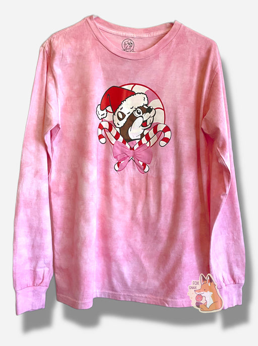 View full detailsGet festive in Buc-ee’s Christmas Long Sleeve Shirt 2025! This soft 100% cotton pink tee features the iconic beaver wearing a Santa hat, framed b...