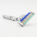 Properly weighted and balanced handle helps reduce pressure placed on the skin during shaving.