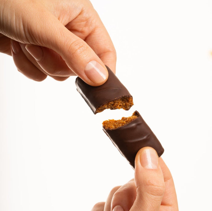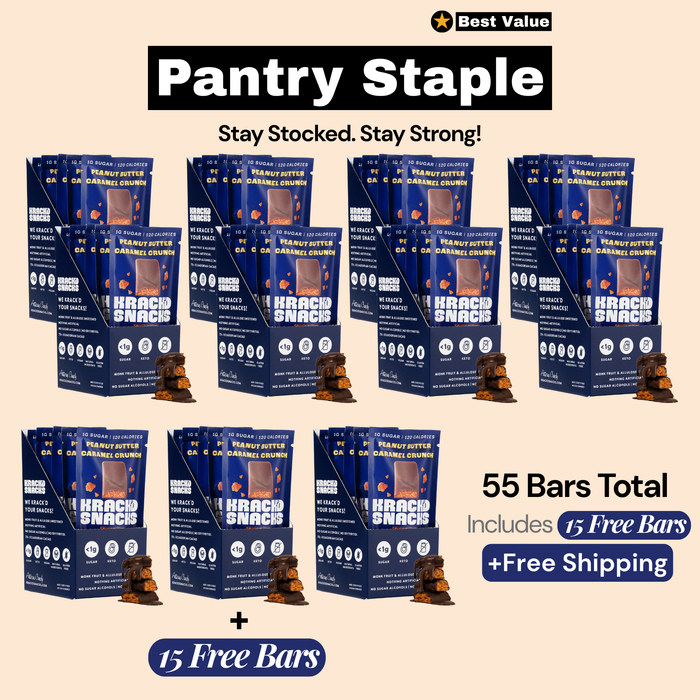 Imagine a Butterfinger-style bite remade for macros: a crunchy peanut-butter caramel core coated in silky monk-fruit–sweetened milk-chocolate. Every 30g bar delivers 2g net carbs, ≈1g sugar, 120 calories and 3g protein, so you can satisfy sweet-and-salty cravings without the crash. Individually wrapped First Taste boxes of 10 plus value 20-pack (includes 5 free + free shipping), 35-pack (includes 10 free + free shipping), and 55-pack (includes 15 free + free shipping) slip into any desk drawer, gym bag or glovebox for guilt-free snacking on demand.