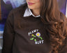 Iconic Plant Slut embroidered sweaters in forrest green, chocolate brown, and pink. **please note the white collar is NOT included**