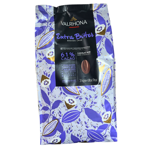 Valrhona Extra Bitter 61% Dark Couverture Chocolate – 3kg (6.6lb) Bag – Grands Crus Blend
