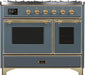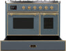 ILVE Majestic II 40" Dual Fuel Liquid Propane Freestanding Range in Blue Grey with Brass Trim UMD10FDNS3BGGLP
