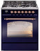 ILVE Nostalgie II 30" Dual Fuel Liquid Propane Range, Blue, Copper Trim UP30NMPMBPLP