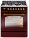 ILVE Nostalgie II 30" Dual Fuel Liquid Propane Range, Burgundy, Brass Trim UP30NMPBUGLP