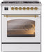 ILVE Nostalgie II 30" Dual Fuel Liquid Propane Range, White, Brass Trim UP30NMPWHGLP