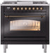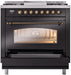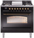 ILVE Nostalgie II 36" Dual Fuel Liquid Propane Range, Glossy Black, Bronze Trim UP36FNMPBKBLP