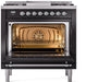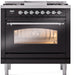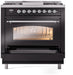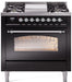 ILVE Nostalgie II 36" Dual Fuel Liquid Propane Range, Glossy Black, Chrome Trim UP36FNMPBKCLP
