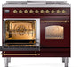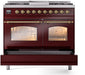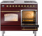 ILVE Nostalgie II 40" Dual Fuel Liquid Propane Range, Burgundy, Brass Trim UPD40FNMPBUGLP